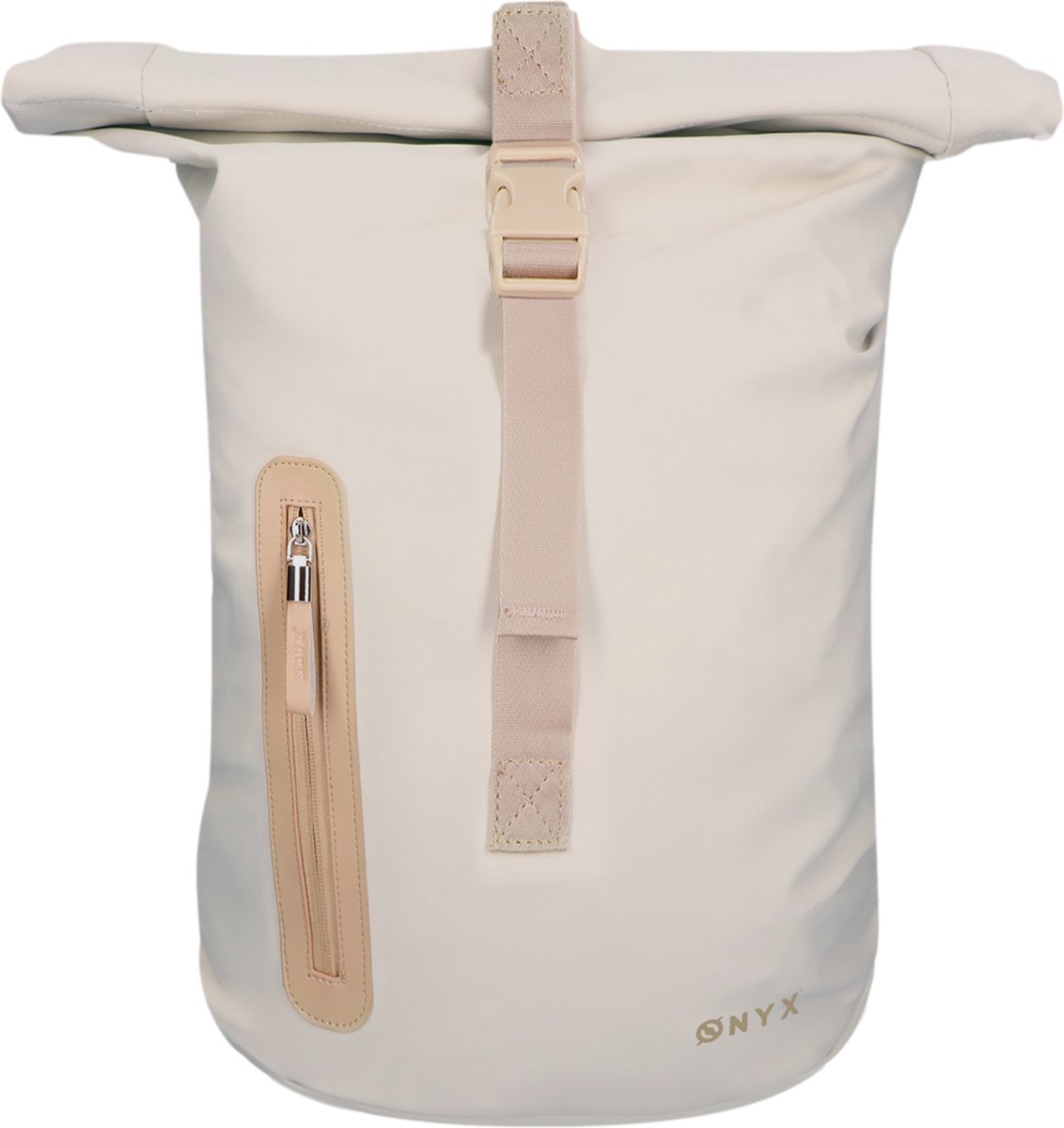 ONYX® Rolltop Rugzak 25 tot 40L Met Laptopvak Verstelbare Rugtas Reistas Waterdicht en Duurzaam Sand. is gemaakt van Polyester. Dit is het hoofdmateriaal wat gebruikt is.