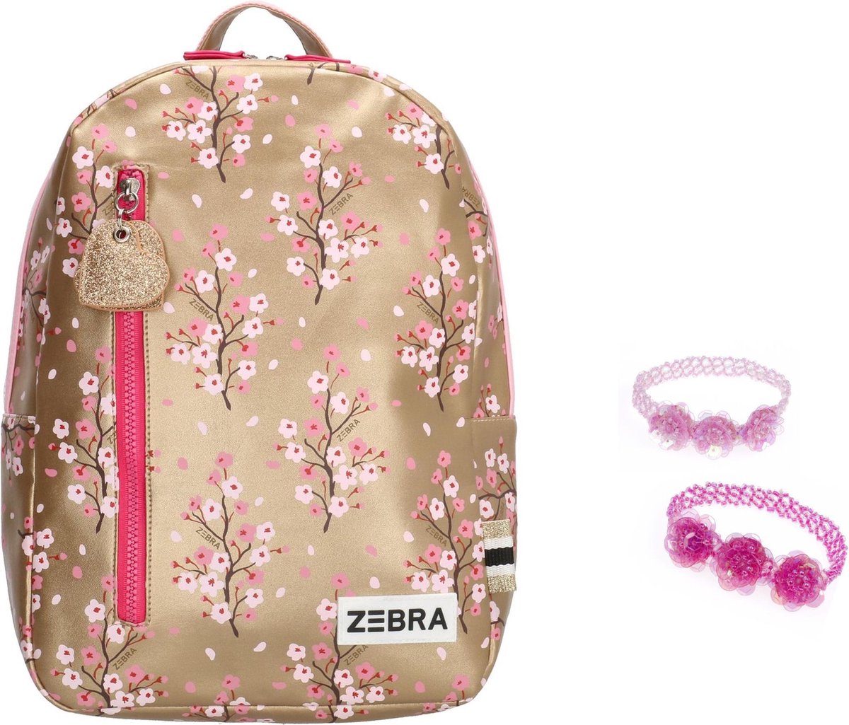 Zebra Rugzak Girls Gold flowers (m) + armbandje. kent de volgende afmetingen: